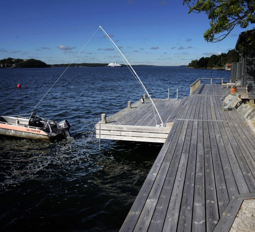 Med robusta y-bommar och slitstarka linor får du ett modernt och lättanvänt förtöjningssystem. Y-bommarna gör det enkelt att lägga till även när det blåser, och de förhindrar effektivt att båten skaver mot kanten på din båtbrygga. Vi dimensionerar systemet efter just din båt för maximal bekvämlighet och säkerhet.