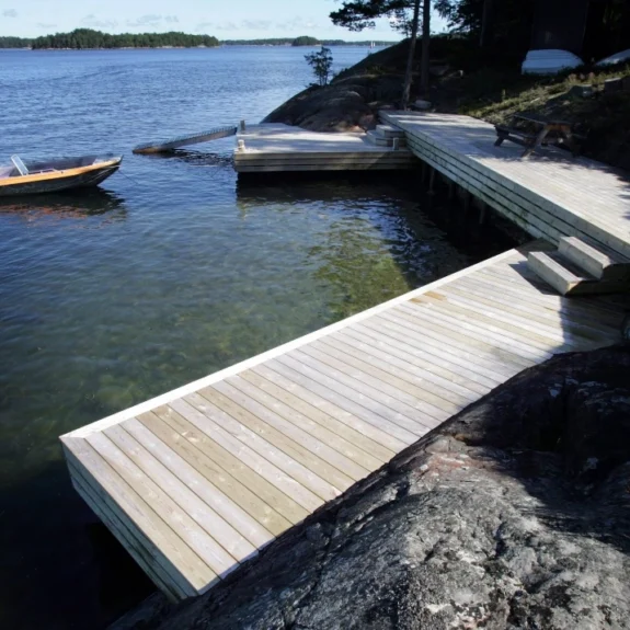 Att bygga båtbrygga kräver stor kunskap om vind, vatten och bottenförhållanden. Vi utgår alltid från din tomts specifika läge och hjälper dig att välja rätt konstruktion – vare sig det handlar om en tung betongponton, en fast stenkista eller en klassisk träbrygga. Med över tre decenniers erfarenhet bygger vi båtbryggor som verkligen står emot skärgårdens utmaningar och förgyller livet vid vattnet.