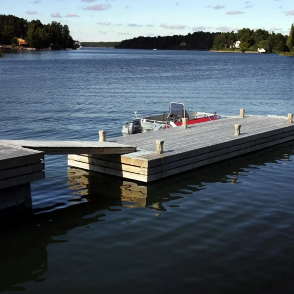 Den här typen av flytbryggor passar dig som vill ha en trygg och stabil båtplats, men ändå behålla den klassiska skärgårdskänslan på din tomt. En vanlig fråga vi får är hur länge en träbetongbrygga faktiskt håller. Svaret är att med rätt underhåll kan livslängden överstiga 40 år – det handlar främst om att se över och eventuellt byta ut trädäcket ungefär vart tionde år.
